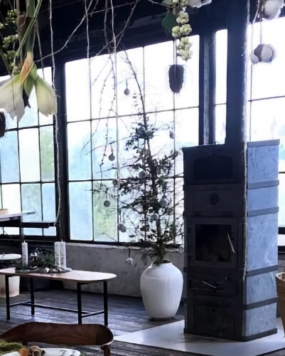 There are literally high ceilings, wood-burning stoves, string lights and a unique view of Copenhagen harbor – all of which create an atmosphere that invites to both coziness and Christmas celebrations.