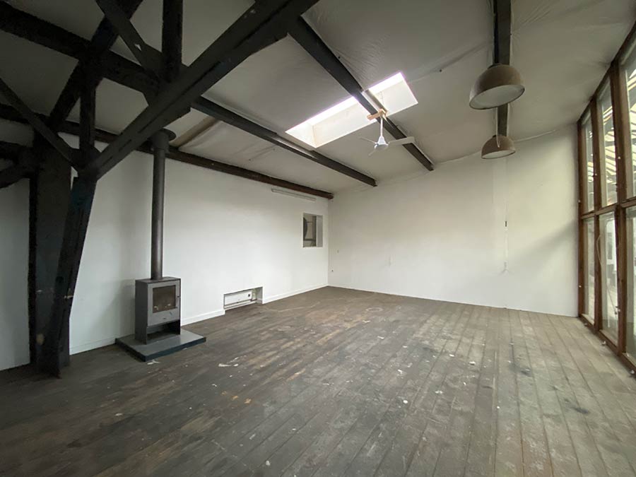 Studiet opvarmes med brændeovn og radiator.