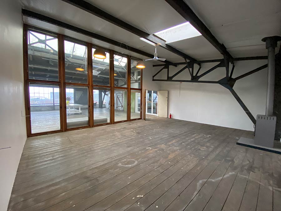 Studieet er 46 kvm, med fint ovenlys og studiet har gennem Skabelonrummet, udsigt over Københavns havn.